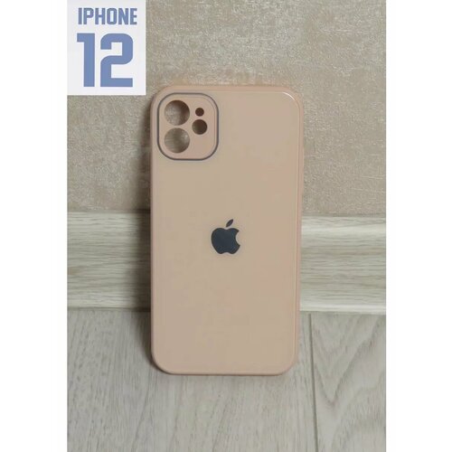 Чехол стеклянный защитный для iPhone 12, цвет пудровый