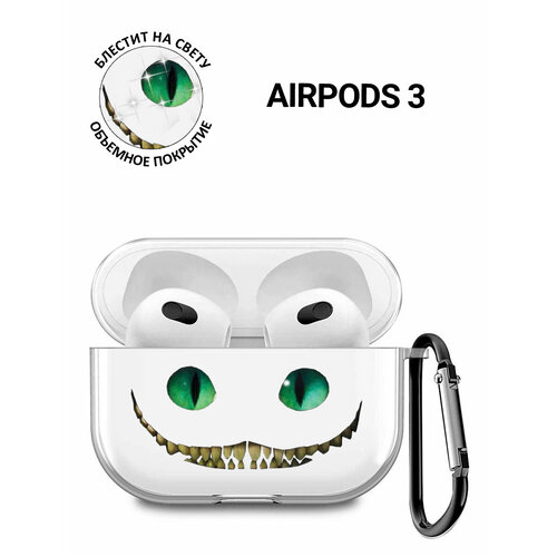 Прозрачный чехол для наушников Apple AirPods 3 / АирПодс 3 силиконовый с 3D принтом "Cheshire Cat"