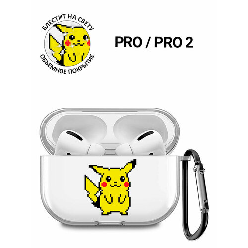 Прозрачный чехол для наушников Apple AirPods Pro / АирПодс Про силиконовый с 3D принтом "Pixel Pikachu"