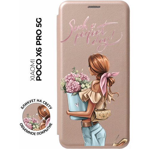 Чехол-книжка на Xiaomi Poco X6 Pro 5G / Сяоми Поко Х6 Про 5г с рисунком "Нежные розы" золотой