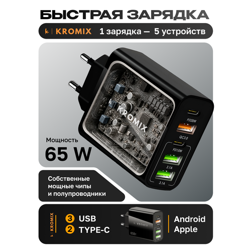 Зарядное устройство для телефона Kromix, черное, универсальное 5в1