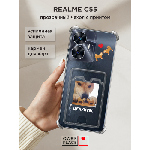 Чехол на Realme C55 (Реалми C55) с картой и принтом Целуйтес мем