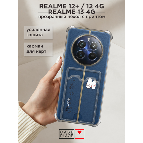 Чехол на Realme 12+/12 4G/13 4G (Реалми 12 Плюс/12 4G/13 4G) с картой и принтом Пушистый белый зайчик