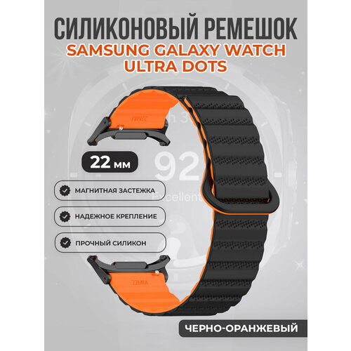 Силиконовый ремешок для Samsung Galaxy Watch Ultra, магнитный, черно-оранжевый
