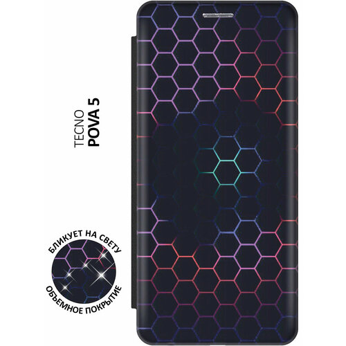 Чехол-книжка Светящиеся соты на Tecno Pova 5 / Техно пова 5 с эффектом блика черный