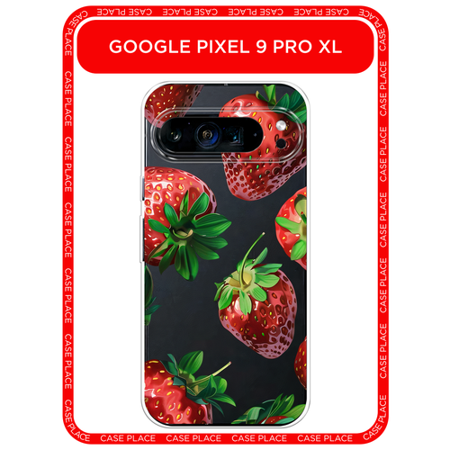 Чехол на Google Pixel 9 Pro XL / Гугл Пиксель 9 Про XL с принтом Сочная клубника 3, прозрачный
