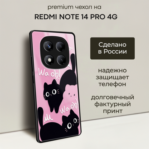 Чехол на Xiaomi Redmi Note 14 Pro 4G / Сяоми Редми Нот 14 Про 4G с объемным принтом "Черные котики"
