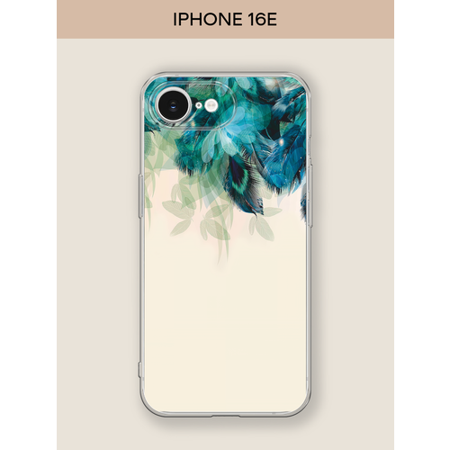 Чехол на Apple iPhone 16e / Айфон 16е с принтом Перья голубого цвета