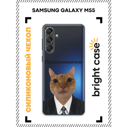 Чехол на Samsung Galaxy M55 / Самсунг M55 с принтом Кот предприниматель, прозрачный