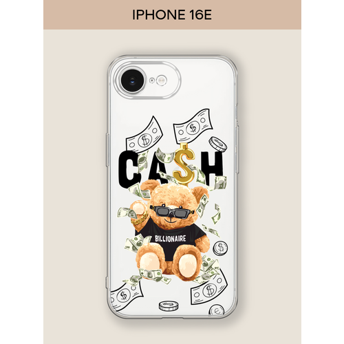 Чехол на Apple iPhone 16e / Айфон 16е с принтом Cash медвежонка, прозрачный