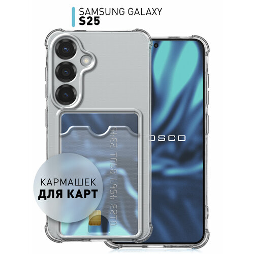 Противоударный чехол с кармашком Rosco на Samsung Galaxy S25 (Самсунг Галакси С25), силиконовый, прозрачный