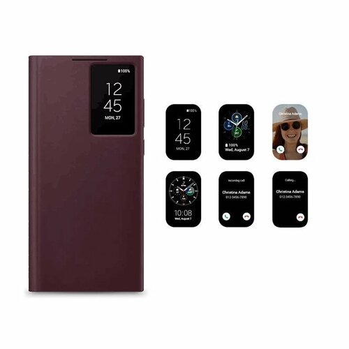 Оригинальный откидной чехол для Samsung Galaxy S22 Ultra S-View для Galaxy S22Ultra Smart View Mirror Flip Case EF-ZS908, Burgundy, Для GalaxyS22Ultra (6,7 ")