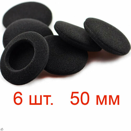 Амбушюры 50 мм, 6 шт. / Поролоновые насадки (накладки) на наушники универсальные / для Koss Porta Pro, Sennheiser PX100, Logitech PC Headset 960 и др