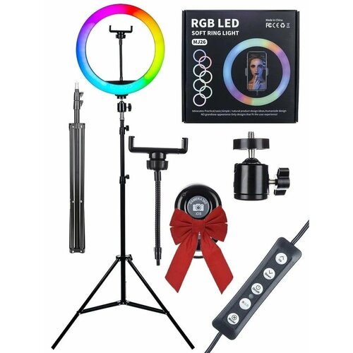 Кольцевая RGB лампа 26см со штативом и держателем для смартфона