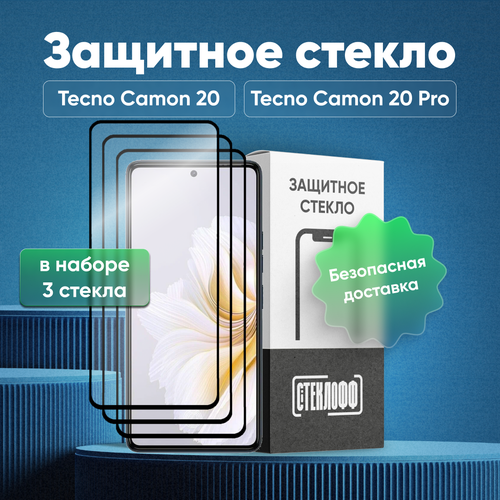 Набор защитных стекол для TECNO Camon 20 / TECNO Camon 20 Pro c полным покрытием, серия Стеклофф Base, 3 шт