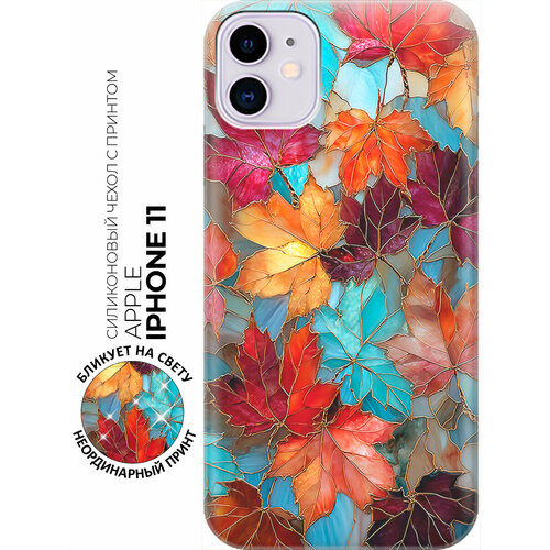 Силиконовый чехол на Apple iPhone 11 с принтом "Осенняя симфония в витражном исполнении"