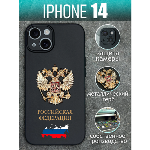 Чехол на iPhone 14 с золотым металлическим Гербом для Айфон 14