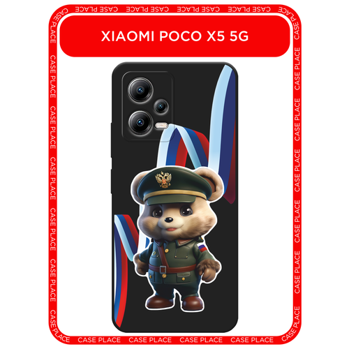 Черный матовый чехол на Xiaomi Poco X5 5G / Сяоми Поко X5 5G с принтом Мишка в форме 4