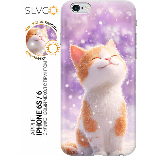 Силиконовый чехол на Apple iPhone 6S / 6 с принтом Котик под снегопадом, trn