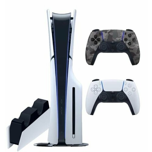Игровая приставка Sony PlayStation 5 Slim с дисководом + 2й геймпад серый камуфляж и зарядная станция