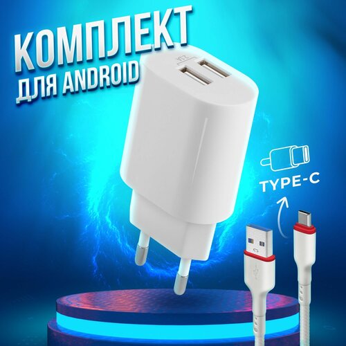 Сетевое зарядное устройство для телефона Defender UPC-24 2xUSB,5V/2.1А, зарядка для телефона с кабелем Type-C в комплекте