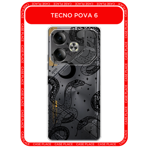 Чехол на Tecno Pova 6 / Текно Пова 6 с принтом Звёздные змеи black, прозрачный