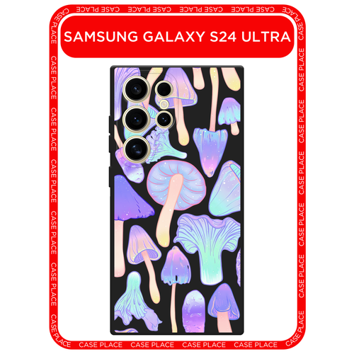 Черный матовый чехол на Samsung Galaxy S24 Ultra / Самсунг S24 Ultra с принтом Пастельные грибы
