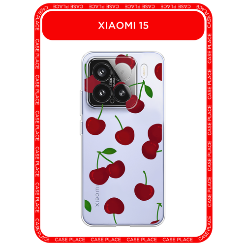 Чехол на Xiaomi 15 / Сяоми 15 с принтом Вишни паттерн 2, прозрачный
