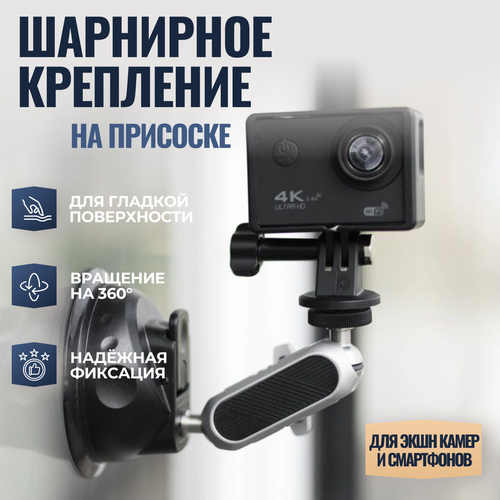 Универсальное шарнирное крепление для экшн камер, фотокамер и смартфонов на присоске / Держатель струбцина для камеры