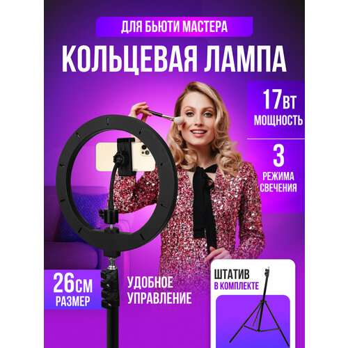 Кольцевая лампа с пультом, 3 режима света, диаметр 26 см, длина 70-210 см, 120 диодов, 17 Вт, USB