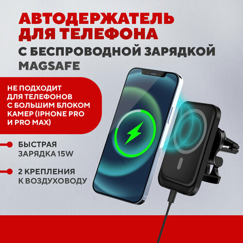Цены на Держатель для телефона автомобильный магнитный, на воздуховод с зарядкой MagSafe, 9 см черный в г. Москва