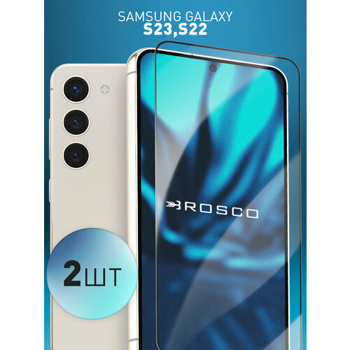 Набор защитных стёкол Rosco на Samsung Galaxy S22 и S23 (Самсунг Галакси С22 и С23), с чёрной рамкой, 2 шт