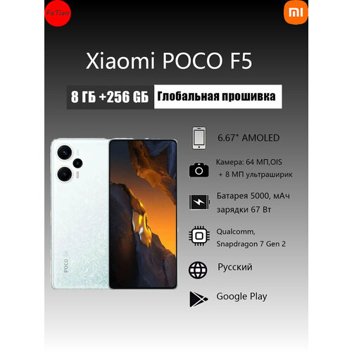 Xiaomi Poco Смартфон F5 8/256 ГБ Global 5G, Поддержка обновления OTA, Dual nano SIM, NFC