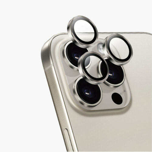 Защитные линзы для камеры iPhone 16 Pro Max KEEPHONE — Закаленное стекло 9H c покрытием AR из алюминиевого сплава-Титан