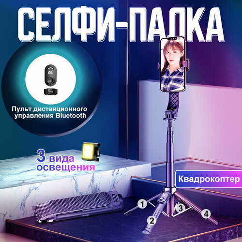Штатив для телефона настольный 8в1, с лампой, 1.05м. селфи палка для телефона. Штатив с дистанционным управлением