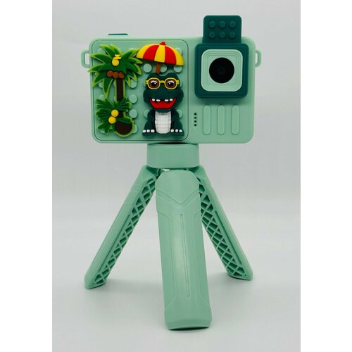 Детский фотоаппарат цифровой с флип-камерой и штативом для мальчиков и девочек — Крокодил