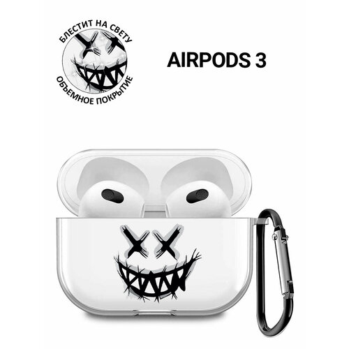Прозрачный чехол для наушников Apple AirPods 3 / АирПодс 3 силиконовый с 3D принтом "Mad Smile"