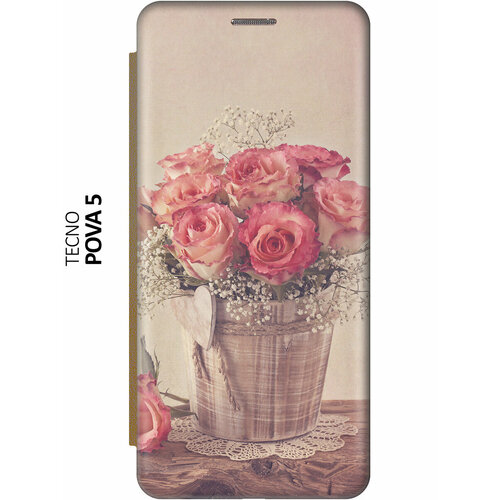 Чехол-книжка Винтажные розы на Tecno Pova 5 / Техно пова 5 золотой