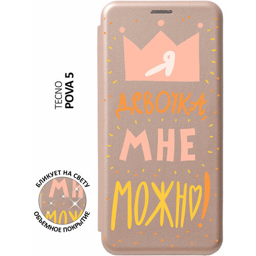 Чехол-книжка I CAN на Tecno Pova 5 / Техно пова 5 с 3D эффектом золотой
