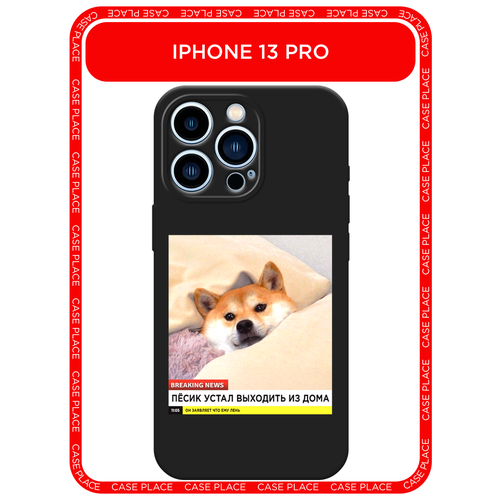 Черный матовый чехол на Apple iPhone 13 Pro / Айфон 13 Про с принтом Уставший песик