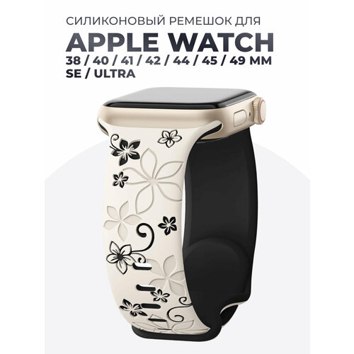 Ремешок для Apple Watch 38 40 41 мм, Se / Se 2 40 мм, Series 10 42 mm с 3D рисунком, бежевый, черный