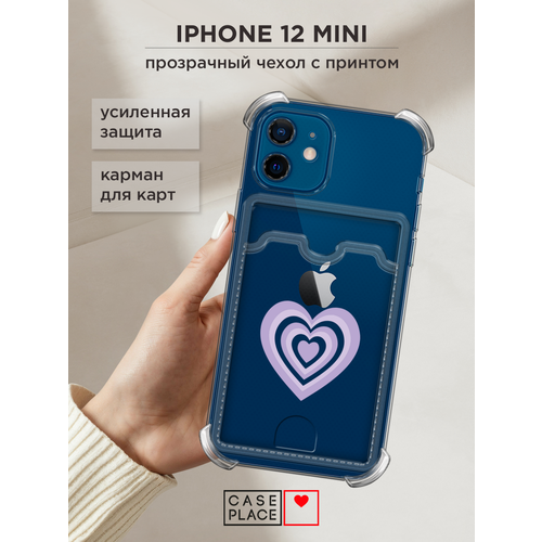 Чехол на Apple iPhone 12 mini (Айфон 12 Мини) с картой и принтом Сиреневое сердечко