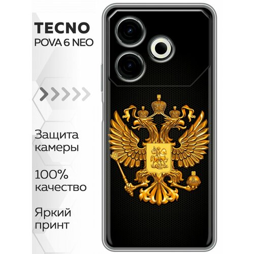 Чехол для Tecno Pova 6 Neo 4G с принтом Герб России желтый (Техно Пова 6 Нео 4G)