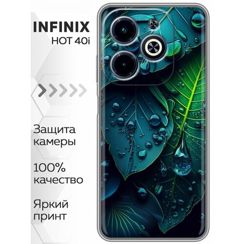 Чехол для Infinix Hot 40i 4G с принтом Зеленые листья (Инфиникс Хот 40и 4G)