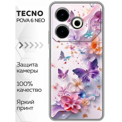 Чехол для Tecno Pova 6 Neo 4G с принтом Красивые бабочки (Техно Пова 6 Нео 4G)