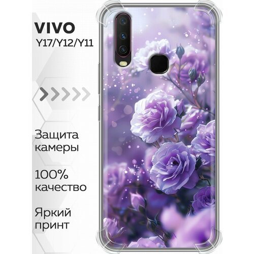 Чехол для Vivo Y17, Vivo Y11, Vivo Y12 с принтом Цветы сиреневые розы (Виво У17, Виво У11, Виво У12)