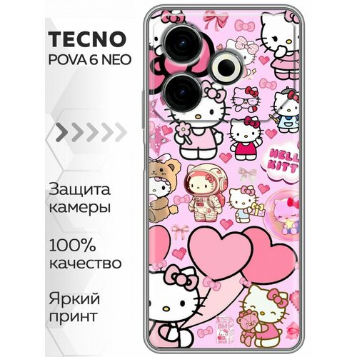 Чехол для Tecno Pova 6 Neo 4G с принтом Hello Kitty Хеллоу Китти (Техно Пова 6 Нео 4G)