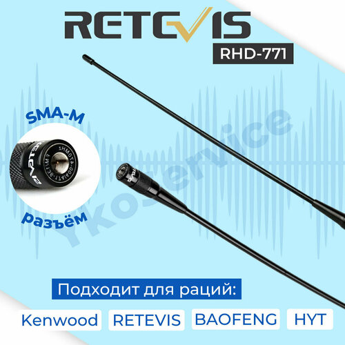 Антенна двухдиапазонная Retevis RHD-771, 39cm VHF UHF (SMA - male). Антенна для раций Baofeng (Баофенг) / YAESU (Яесу)/ RETEVIS (Ретевис), TYT/Tytera.