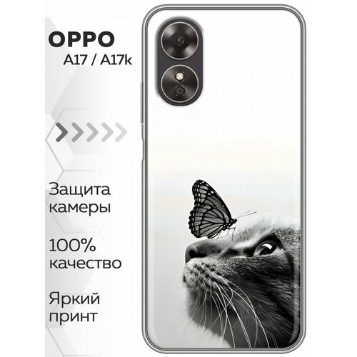 Дизайнерский силиконовый чехол для Оппо А17 / OPPO A17 Кот и бабочка