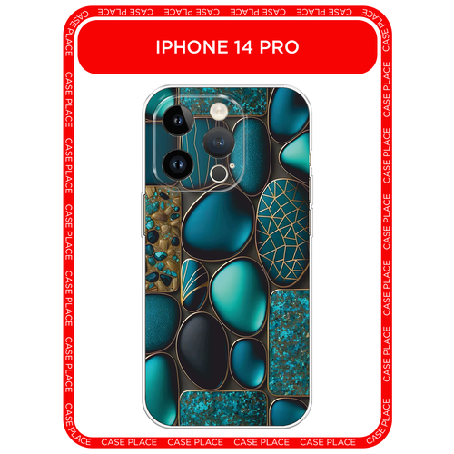 Чехол на Apple iPhone 14 Pro / Айфон 14 Про с принтом Бирюзовые камни